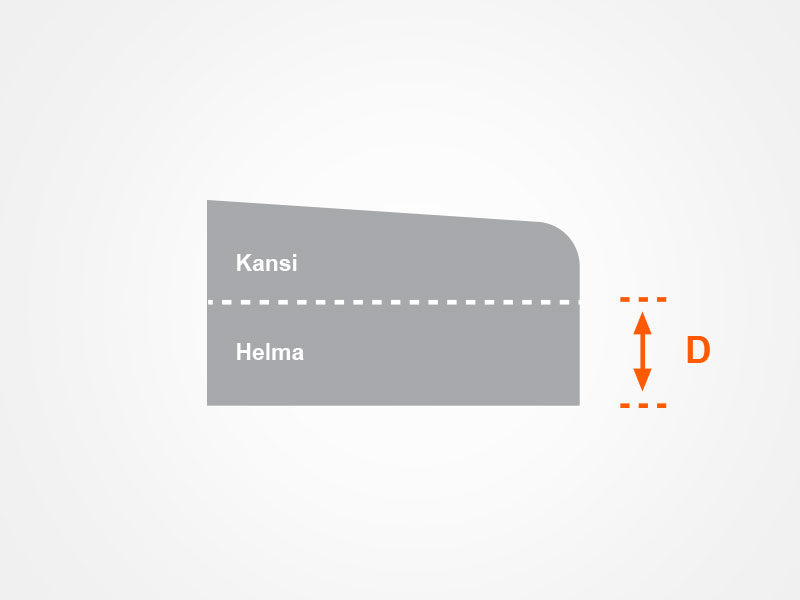 Mittaa helman pituus suojakannen alareunasta alaspäin.