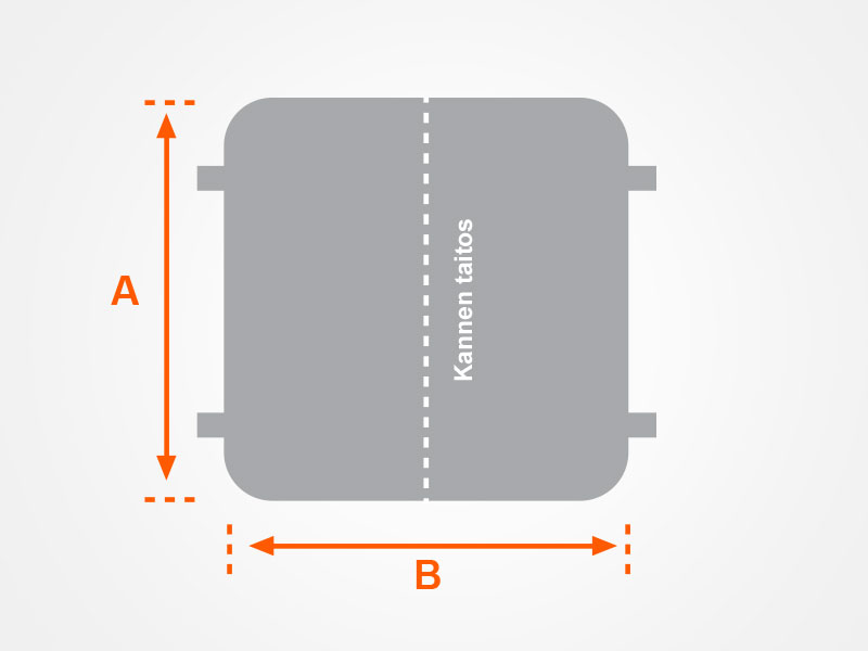 Mittaa altaan leveys (A) ja pituus (B). Mitta A on yleensä altaan pidempi sivu jolla on kannen kiinnityssoljet. Tällä hetkellä suurin mahdollinen verkkokaupan kautta tilattava kansi on mitoiltaan A = 254 cm ja B = 254 cm. Tätä suuremmat kannet on mahdollista valmistaa erikoistilauksena. Jos tarvitset edellä olevia mittoja suurempaa kantta, ota yhteyttä asiakaspalveluumme info@lampokansi.fi.